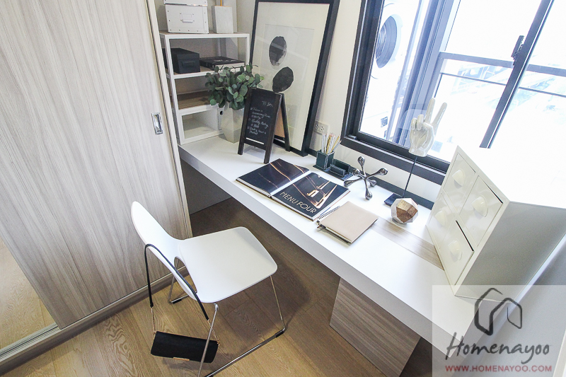 มุมโต๊ะทำงานจะเห็นว่ากว้างขึ้น มีพื้นที่ของชั้นเก็บของมากขึ้นค่ะ