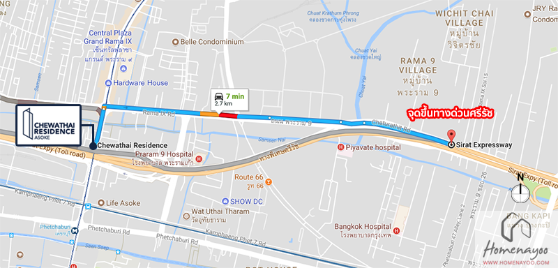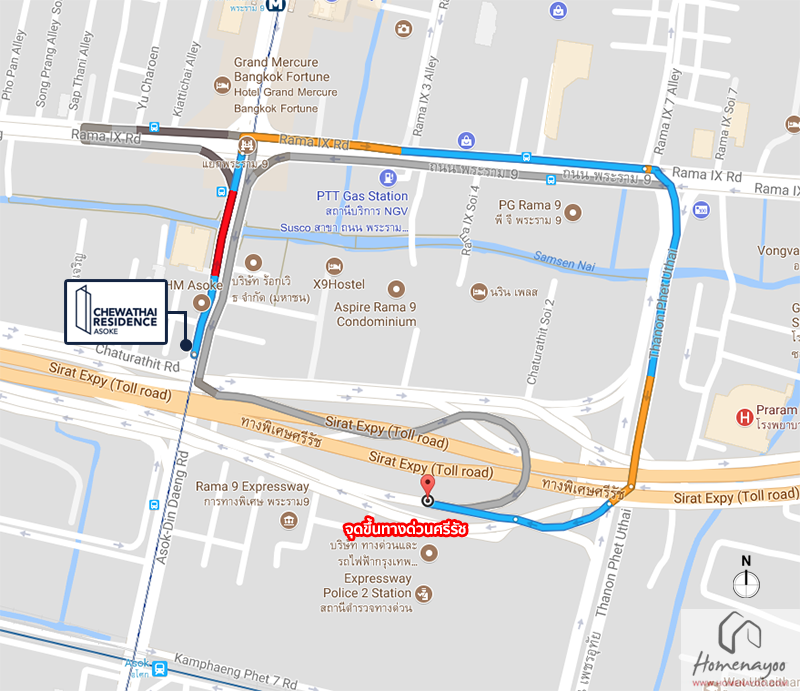 ทำเลที่ตั้งโครงการ : Chewathai Residence อโศก ตั้งอยู่ติดถนนอโศก-ดินแดงแดง ทำเลอยู่ระหว่าง CBD ปัจจุบัน ค่อนมาทางบริเวณของ New CBD ในอนาคต คือย่านพระราม 9 และรัชดาภิเษก ใกล้แยกพระราม 9 และ แยกอโศก-เพชรบุรี ซึ่งเป็นทำเลบน New CBD แห่งใหม่ของกทม. จุดศูนย์กลางของสำนักงานขนาดใหญ่หลายแห่ง รวมไปถึงโครงการใหม่ อย่าง เดอะ แกรนด์ พระราม 9 จาก G Land ทั้งยังมีโครงการ The Super Tower ตึกสูง 125 ชั้น ซึ่งจะเป็นตึกที่สูงที่สุดในประเทศไทย และ อาเซียน ทำให้ในอนาคตจะมีมนุษย์เงินเดือน ตั้งแต่ระดับทั่วไป จนถึงระดับผู้บริหาร เข้ามาทำงานในโซนนี้เป็นจำนวนมาก