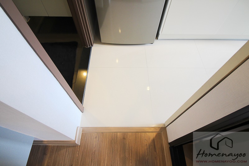 ข้างๆ พื้นที่วางตู้เย็นจะมีประตูห้องน้ำค่ะ ซึ่งเปิดเข้าไปในส่วนนี้จะเป็นส่วนของแขกนะ