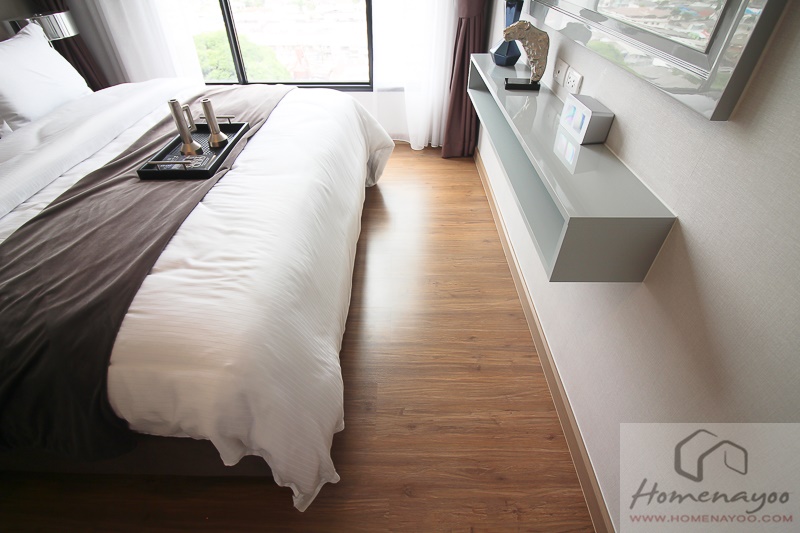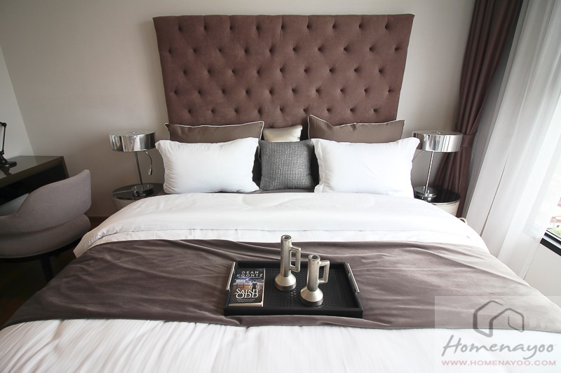 ภายในห้องเราก็จะได้ เตียงนอนขนาด 6 ฟุต, โต๊ะข้าง 2 ตัว, โต๊ะทำงาน และชั้นวางทีวีมาแบบในห้องเลยค่ะ