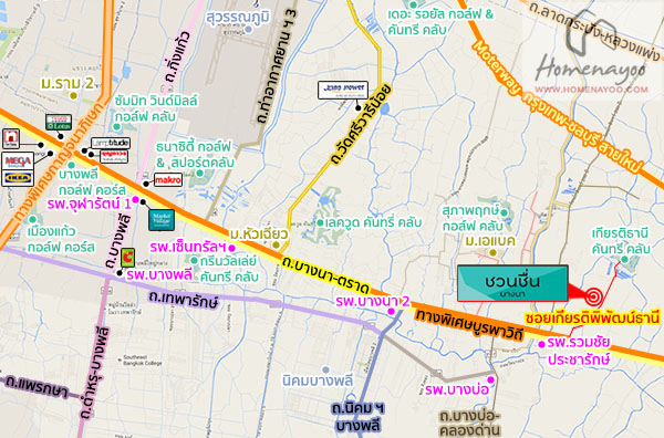 | สถานที่สำคัญใกล้เคียง | 1. สนามบินสุวรรณภูมิ 2. ศูนย์วิจัยโตโยต้า ประจำภาคพื้นเอเชียแปซีฟิค 3. สนามกอล์ฟเกียรติธานี คันทรี คลับ 4. ห้างสรรพสินค้าโลตัส 5. MEGA Bangna |