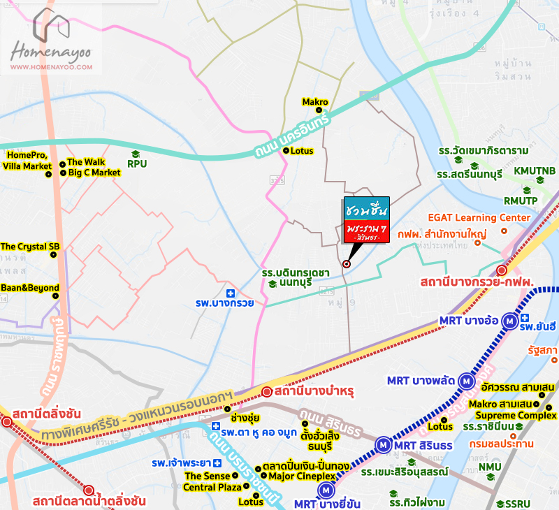 | สถานที่สำคัญใกล้เคียง | 1. ตั้งฮั่วเส็ง 2. เซ็นทรัลปิ่นเกล้า 3. โรงพยาบาลศิริราช 4. โรงพยาบาล ตาหูคอจมูก 5. ม.ราชภัฎสวนดุสิต 6. ม.ราชภัฏสวนสุนันทา 7. ร.ร.อนุบาลเด่นหล้า |
