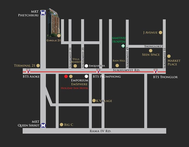 ถ.เอกมัย > แยกเอกมัย-สุขุมวิท > ถ.สุขุมวิท > แยกสวัสดี > ซ.สุขุมวิท 31 > โครงการ The Circle Sukhumvit 31 ค่ะ