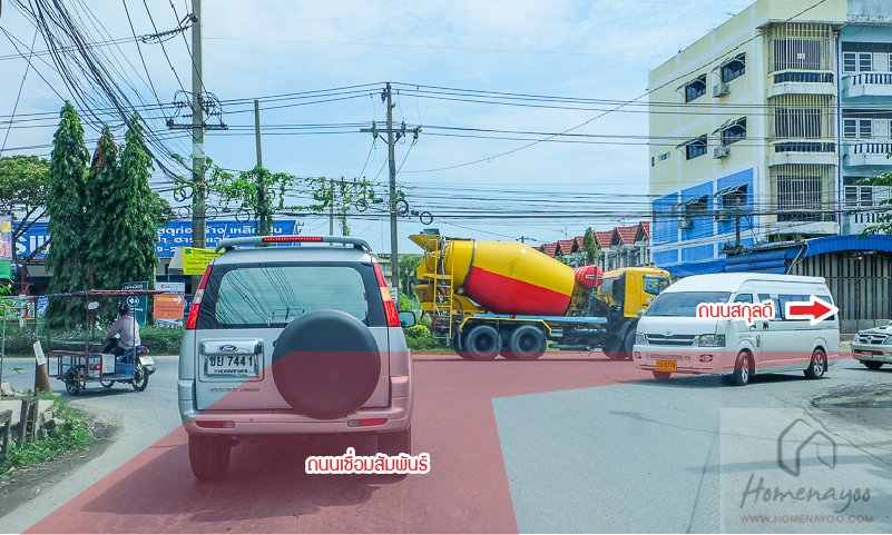 กลับออกมาที่ถนนหลัก ถัดเข้าไปขวามือก็จะเป็นซอยย่อยทั้งหมดจนถึงด้านหลังโครงการ