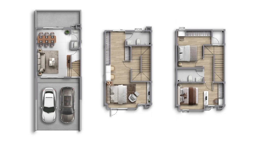 • แบบบ้าน SOUL | ทาวน์โฮม 3 ชั้น หน้ากว้าง 5 ม. ที่ดินเริ่มต้น 17 ตร.ว. พื้นที่ใช้สอย 132 ตร.ม. ฟังก์ชันบ้าน 3 ห้องนอน, 3 ห้องน้ำ พร้อมที่จอดรถ 2 คัน