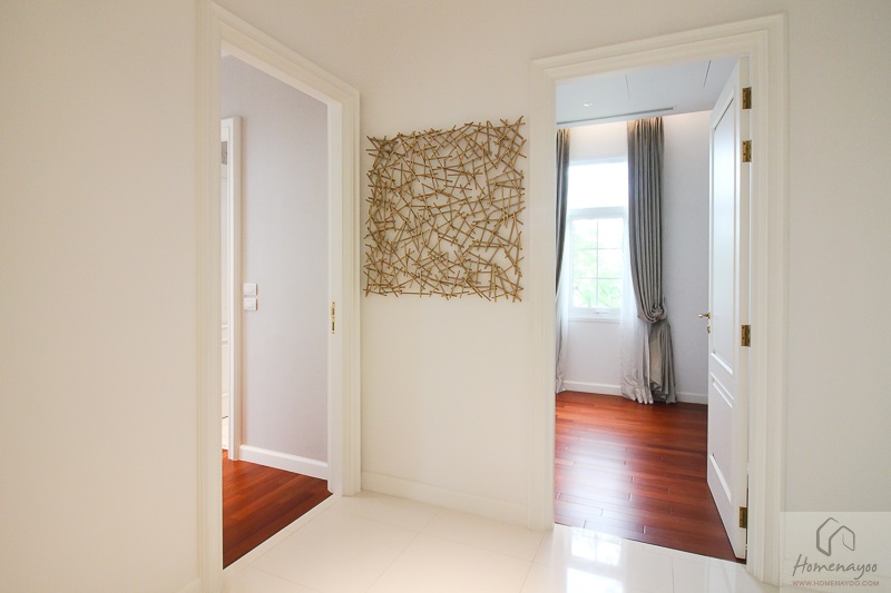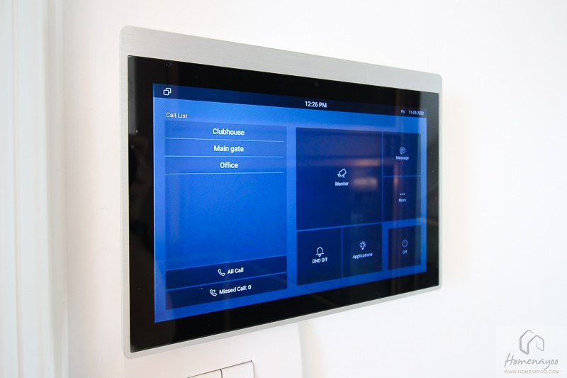 บริเวณหน้าโถงบันไดชั้น 2 จะมีหน้าจอมอนิเตอร์เป็น Smart Andriod ติดตั้งมาให้ ซึ่งเป็นระบบ Smart Home ของบ้าน ที่สามารถเชื่อมต่อกับฝ่ายนิติบุคคล, Video Door Bell หน้าบ้าน รวมไปถึง Connect กับกล้อง CCTV ตรงป้อม รปภ. ที่ Main Gate ให้เราเปิดดูแขกที่มาเข้าพบได้ และยังสามารถเปิดดูกล้อง CCTV เพื่อดูพื้นที่ส่วนกลางแต่ละส่วนได้ด้วยว่ามีคนเข้าใช้งานอยู่มั้ย หรือว่าลูก ๆ ของเราที่ออกไปวิ่งเล่นกันยังปลอดภัยดีมั้ย ถือว่าดีมาก ๆ