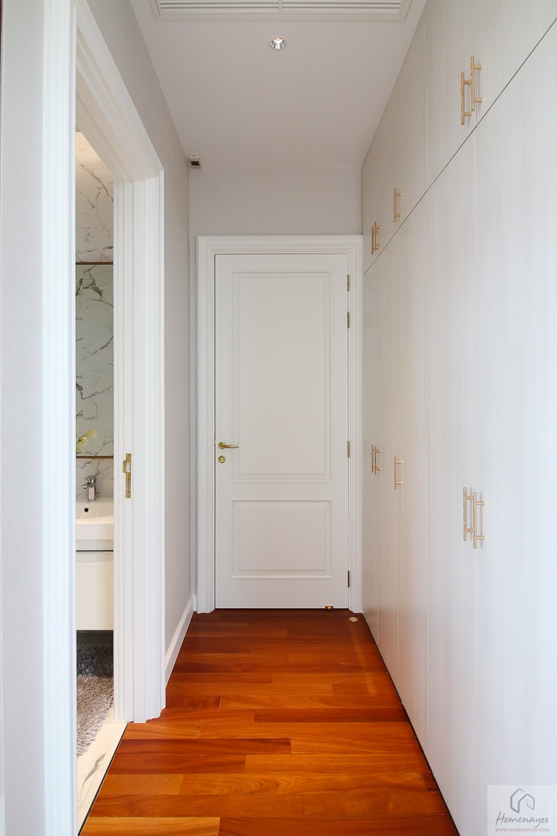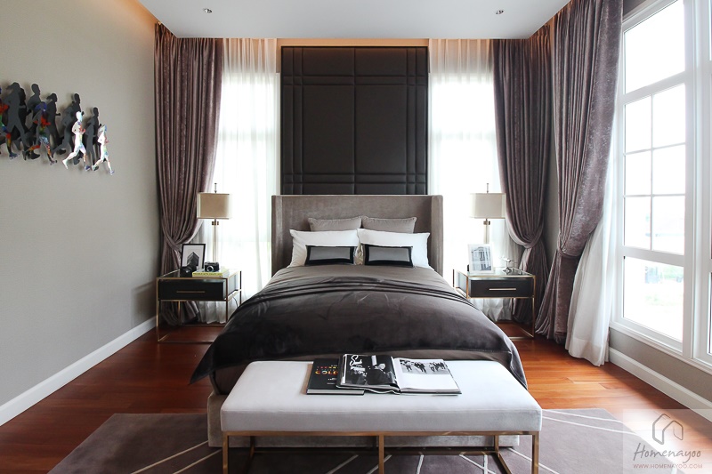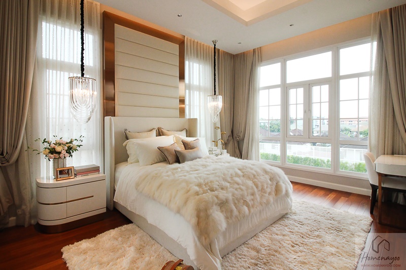 เรามาดู Master Bedroom กันค่ะ มีการเพิ่มความแกรนด์ของห้องด้วยประตูทางเข้าห้องแบบบานเปิดคู่แบบนี้ มีความกว้างถึง 1.6 เมตร และสูง 2.4 เมตร