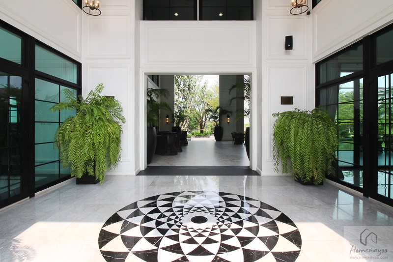 พอเราเดินเข้าไปภายในคลับเฮาส์ ส่วนแรกจะเป็น Foyer เป็นจุดต้อนรับจึงมีการออกแบบให้ดูหรูหราและเชื้อเชิญ