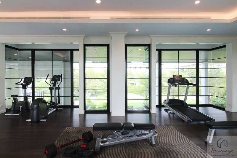 และอีกห้องก็คือห้องฟิตเนสค่ะ ภายในมีอุปกรณ์ออกกำลังกายทั้ง Cardio และ Weight Training Machine จัดเอาไว้ให้อย่างครบครัน โดยทางโครงการเลือกใช้เครื่องออกกำลังกายที่มีคุณภาพของแบรนด์ Life Fitness