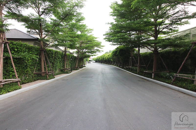 เราจะเห็นว่าบรรยากาศภายในโครงการนี้ดูเรียบร้อยมาก เพราะมีการนำสายไฟฟ้าลงใต้ดินให้ทั้งหมด 2 ข้างทางของถนนก็ปลูกต้นไม้ให้ความร่มรื่นดีเลยค่ะ