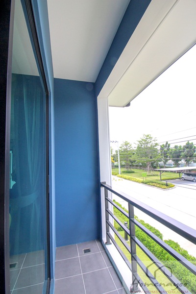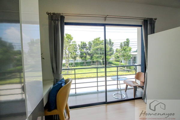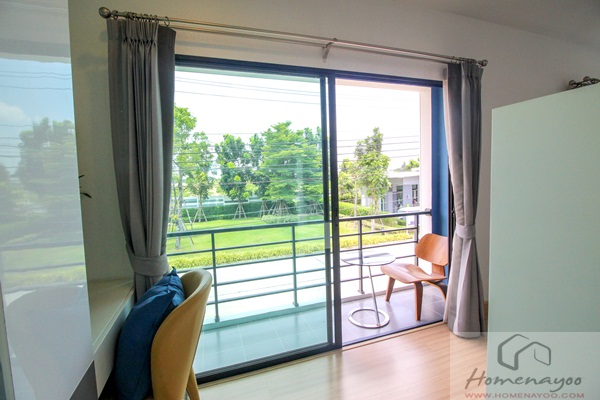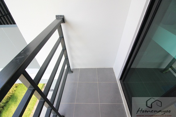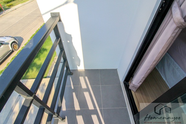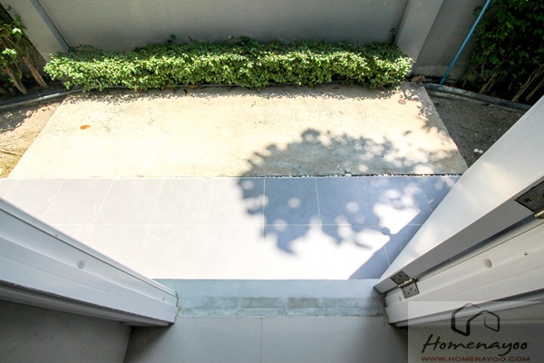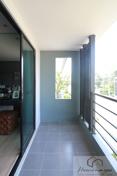 ออกไปชมที่ระเบียงกันนะคะ ประตูระเบียง และขนาดของระเบียงนี้จะเท่ากับห้องนอน 3 ค่ะ นั่นก็คือ 1.2 ตร.ม.