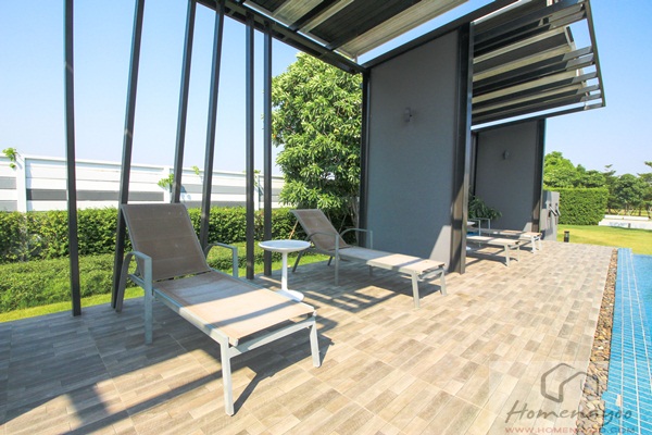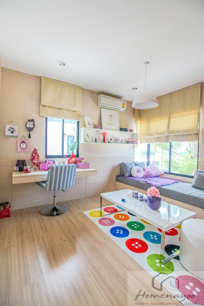 | สิ่งอำนวยความสะดวก | – ป้อมยาม เข้าโครงการระบบ Access Key Card รปภ. 24 ชม. CCTV บริเวณป้อมยาม – พื้นที่สวน : ซึ่งจะเป็นพื้นที่ขายในอนาคต – ลานจอดรถ : จอดได้ประมาณ 8 คัน – สำนักงานนิติบุคคล – Club House ประกอบด้วย สระว่ายน้ำ : ขนาด 20 x 5 ม. ลึก 1.3 ม. ระบบเกลือ สระเด็ก : ขนาด 5 x 5 ม. ลึก 0.75 ม. ห้องอาบน้ำพร้อม Locker – สวนพักผ่อน – ระบบสัญญาณกันขโมย Smart Home Security System ติดให้ทุกหลัง |