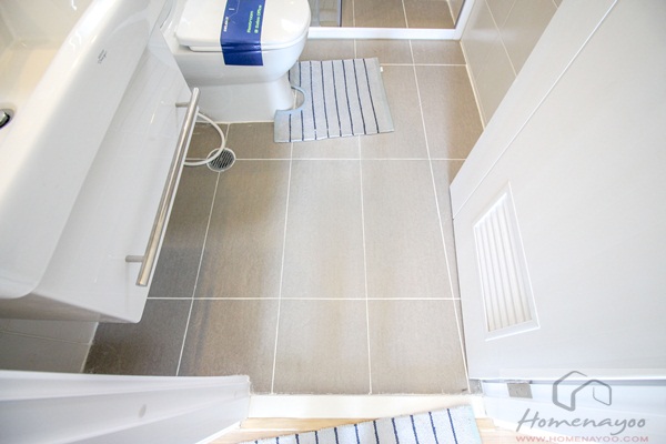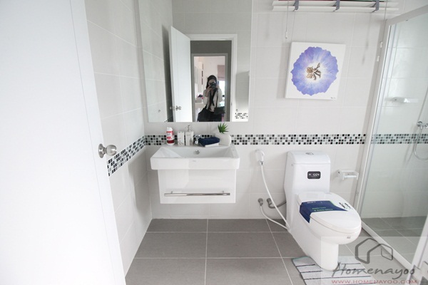 ถัดจากห้องอเนกประสงค์ก็จะเป็นห้องน้ำค่ะ เราไปชมห้องน้ำกันนะคะ