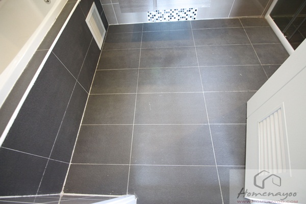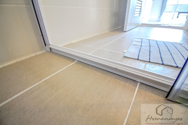 พื้นระเียงกว้าง 0.8×1.6 ม. ลดระดับลงจากพื้นห้องนอน 4 ซม. ปูด้วยกระเบื้องเซรามิกขนาด 30×30 ซม.