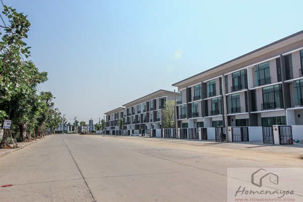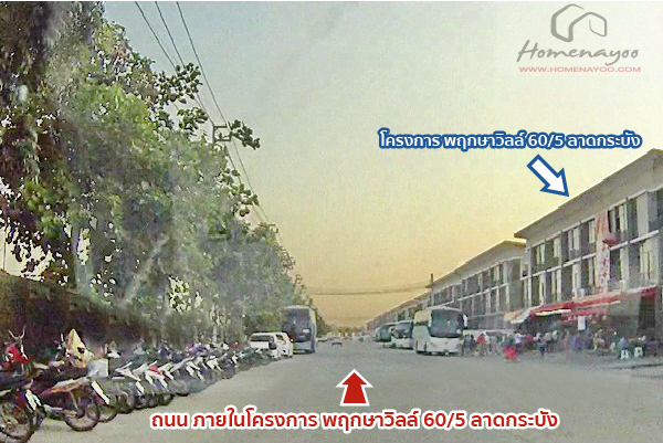 เมื่อเลี้ยวเข้ามาแล้วก็จะเจอโครงการ พฤกษาวิลล์ 60/5 ลาดกระบัง ทาวน์โฮม 3 ชั้น อยู่ด้านซ้ายมือตลอดแนว