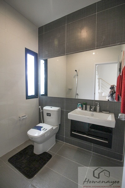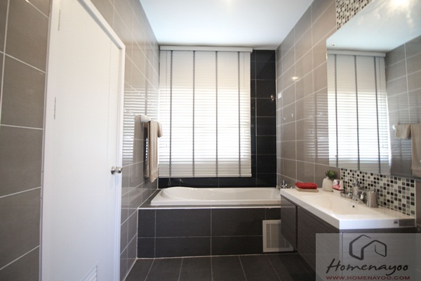 • วัสดุ วัสดุก่อสร้างและ วัสดุปิดผิวเป็นแบบมาตรฐาน ส่วนอุปกรณ์สุขภัณฑ์ที่ได้จะอยู่ในระดับมาตรฐานถึงดี สุขภัณฑ์ใช้ของ MOGEN, Bathroom Design หรือเทียบเท่า พื้นชั้นล่างใช้กระเบื้องแกรนิตโต ชั้นบนเป็นลามิเนตทั้งหมด , พื้นส่วนอื่นจะเป็นกระเบื้องเซรามิกขนาด 30×30 ซม. ทั้งเฉลียง และในห้องน้ำ พื้นโรงรถเป็นคอนกรีตผิวเรียบไม่มีลวดลาย ต้องหาวัสดุมาปูกันเอาเองนะคะ โครงการมีถังขยะติดให้หน้าบ้านและช่องขยะจากภายนอก