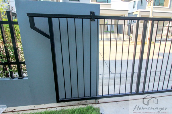 ประตูรั้วเหล็กทาสีน้ำมันสีดำ รางเลื่อน สูง 1.2 ม.