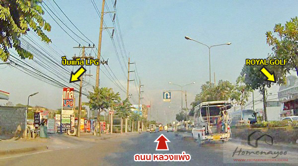 เลยอาคาร Royal Thai Herb ไป 200 เมตร จะเจอปั๊ม LPG อยู่ฝั่งซ้าย และ ป้าย Royal Golf อยู่ฝั่งขวา
