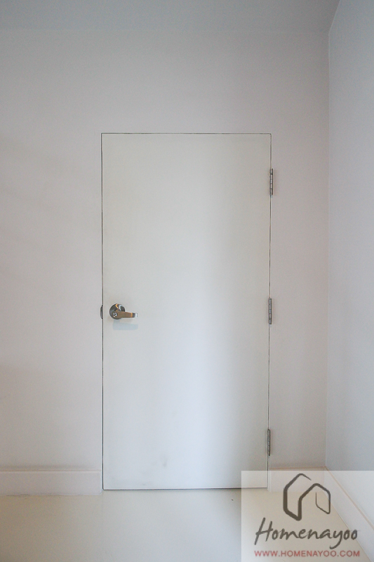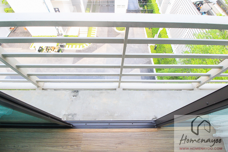 ประตูที่เชื่อมระเบียงภายนอก เป็นประตูบานเลื่อนเดี่ยว บานกรอบอลูมิเนียม