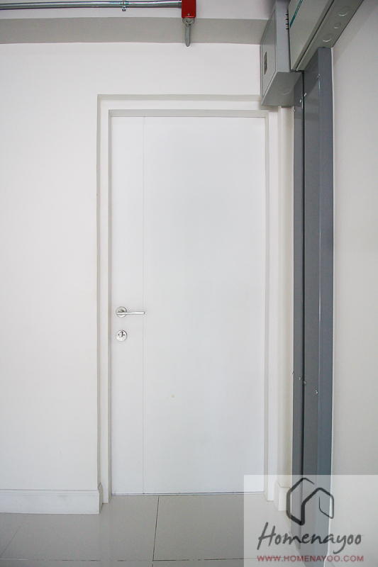 ประตูเชื่อมระเบียงภายนอกเป็นประตูบานเลื่อน พร้อมช่องแสงเพิ่มด้านบน