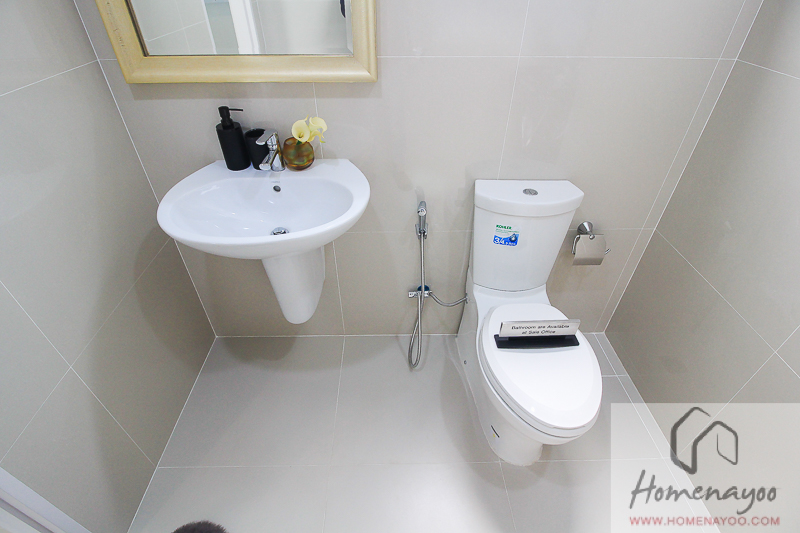 ด้านหลังอ่างล้างมือและโถสุขภัณฑ์มี Low Wall สามารถใช้วางของได้
