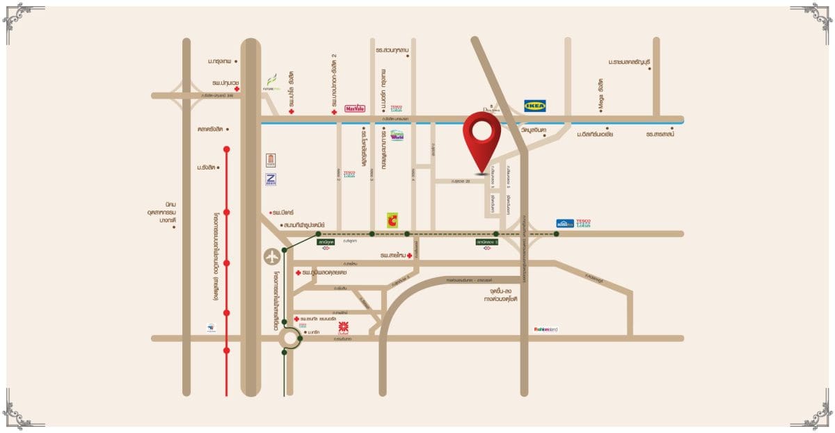 สามารถเชื่อมต่อไปยังสถานที่สำคัญต่าง ๆ ได้สะดวก ทั้งห้างสรรพสินค้า, สถานศึกษา และโรงพยาบาล ใกล้ Market Village รังสิต และ HomePro ลำลูกกา เพียง 10 นาที* และใช้เวลาเพียง 5 นาที* ถึง รร.บีคอนเฮาส์ แย้มสอาดรังสิต