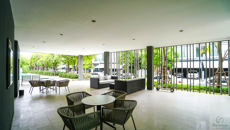 สิ่งอำนวยความสะดวกและระบบรักษาความปลอดภัย : ส่วนกลางที่นี่จัดเต็มกิจกรรมหลากหลาย ออกแบบมาได้สวยน่าใช้งาน มี Clubhouse 2 ชั้น ภายในแบ่งเป็น Lobby พื้นที่นั่งพักผ่อน ทำงาน หรือเป็นจุดนัดรับแขก และมีพื้นที่นั่งพักผ่อนแบบ Semi-Outdoor