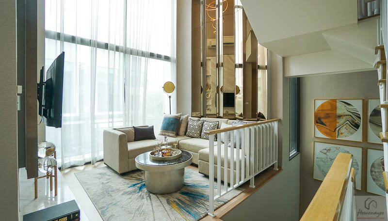 และไฮไลท์ของห้องนี้คือมีฝ้าเพดานที่สูงโปร่งแบบ Double Volume ความสูงอยู่ที่ 5.8 ม.