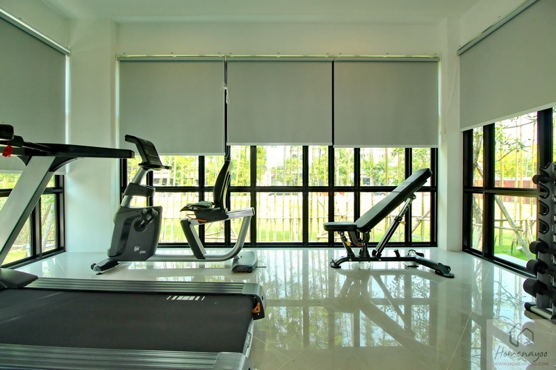 ห้องฟิตเนสเป็นห้องที่ออกแบบให้มีกระจกล้อมรอบ ซึ่งหากใช้งานในช่วงบ่ายแก่ๆ หรือตอนเย็นสามารถเปิดผ้าม่านเพื่อเทควิวได้อย่างปลอดโปร่ง