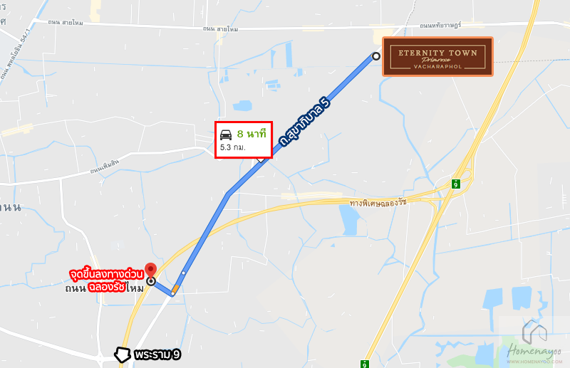 สรุปการเดินทาง : ทางด่วนรามอินทรา-อาจณรงค์ > ทางออก 22 ถนนสุขาภิบาล 5 > ถนนสุขาภิบาล 5 > Eternity Town Primrose วัชรพล
