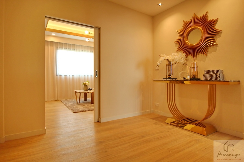 บนชั้น 2 ขึ้นบันไดมาส่วนแรกจะเจอกับห้องโถงเปิดโล่ง ที่ทางโครงการมีการกั้นห้องเอาไว้ให้ดูเป็นตัวอย่างสำหรับพื้นที่ Family Area
