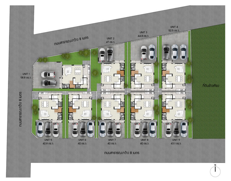 | เนื้อที่บ้าน | เริ่มต้น 40-58.8 ตร.ว. |