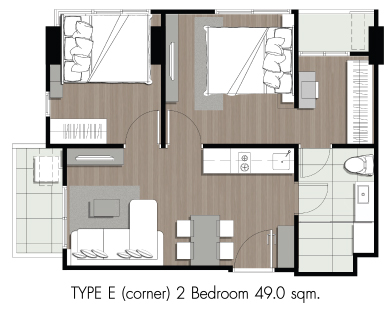 | ลักษณะห้องและขนาดห้อง | – 1 Bed : 31.0-36.5 ตร.ม. – 2 Bed : 49.0-62.0 ตร.ม. |