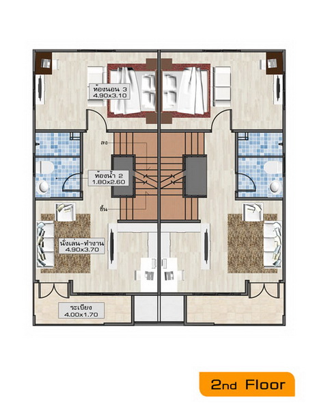 – ทาวน์โฮม 3 ชั้น กว้าง 5 เมตร ลึก 11 เมตร