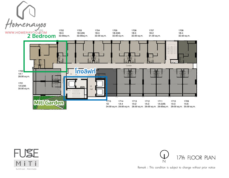 | ค่าส่วนกลางและกองทุน | ค่าส่วนกลาง 42 บาท/ตร.ม. / เดือน ค่ากองทุน 500 บาท/ตร.ม. |
