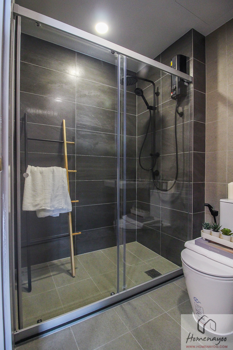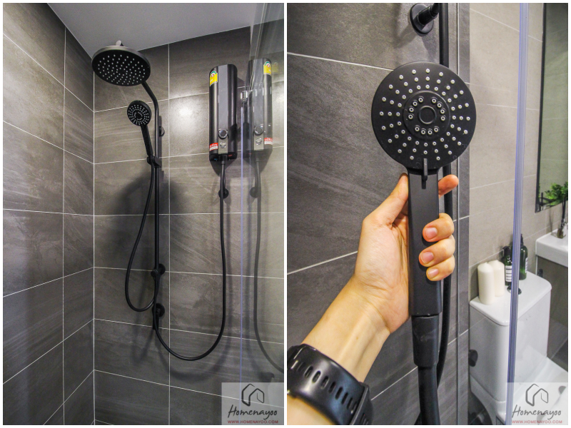 ภายในติดตั้งฝักบัวให้ 2 แบบ คือ Hand Shower และ Rain Shower ใช้โทนสีดำทั้งหมด