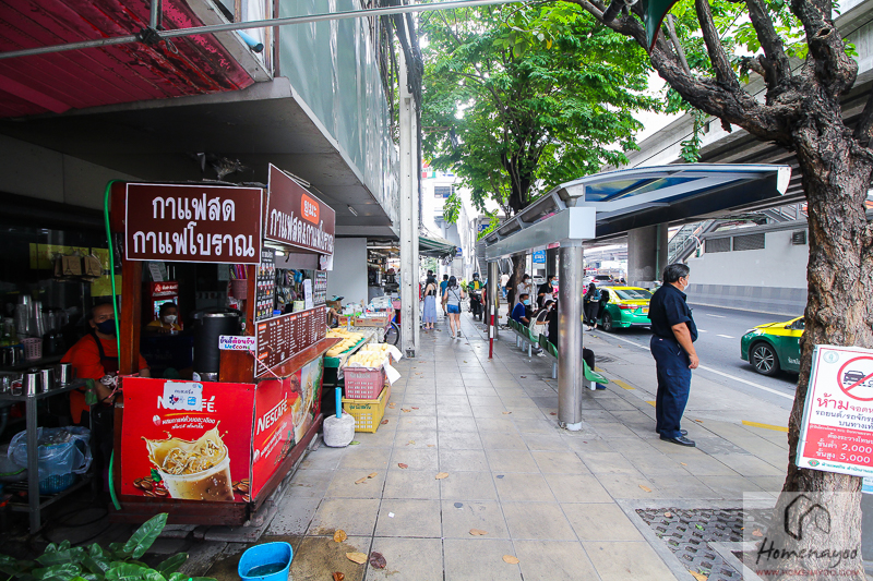 ด้านหน้ามีสะพานลอยใช้ข้ามไปฝั่งตรงข้าม