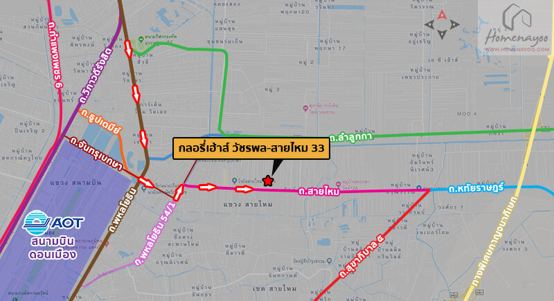 จุดสังเกตทางเข้าโครงการจะเป็น ซอยสายไหม 33, ฝั่งตรงข้ามจะเป็น ซอยสายไหม 46