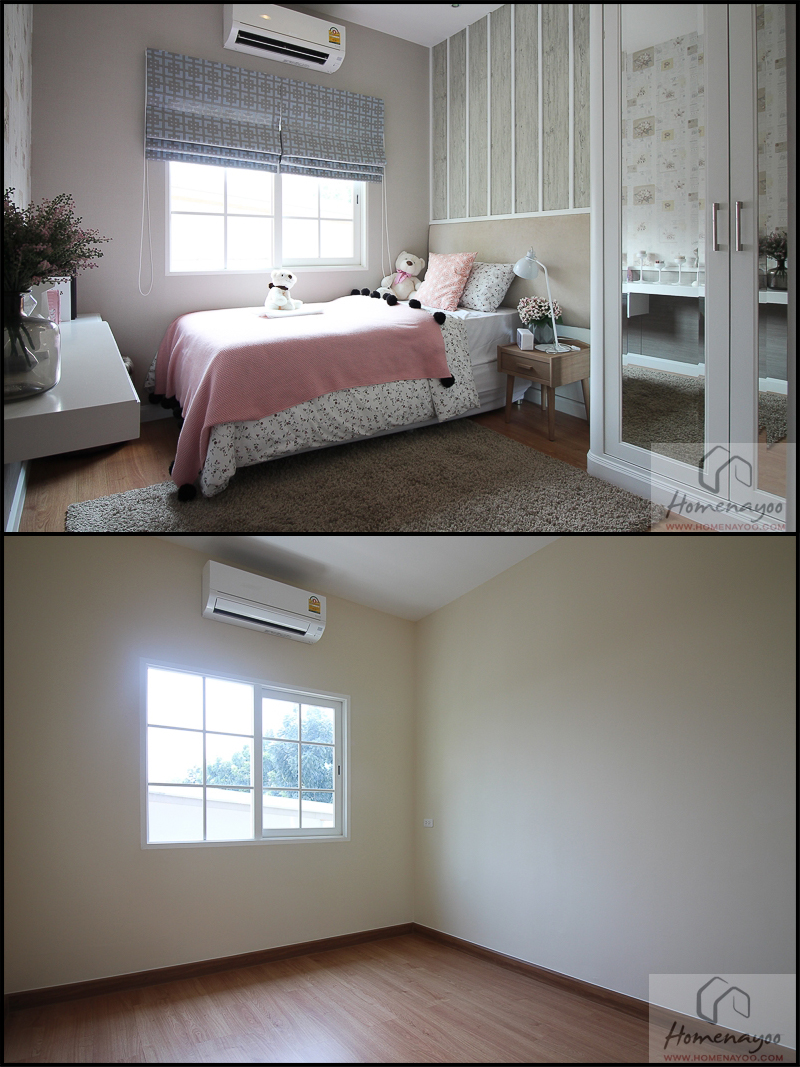 มุมมองเข้าไปภายในห้องนอน 2 จะไม่แตกต่างจากแบบบ้านหลังที่แล้วเลย แต่มีขนาดที่เล็กกว่าหน่อย