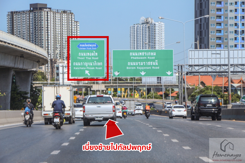 ให้สังเกตสะพานลอยตรงคลองวัดโคนอน จากนั้นชิดซ้ายชะลอไว้เลยค่ะ