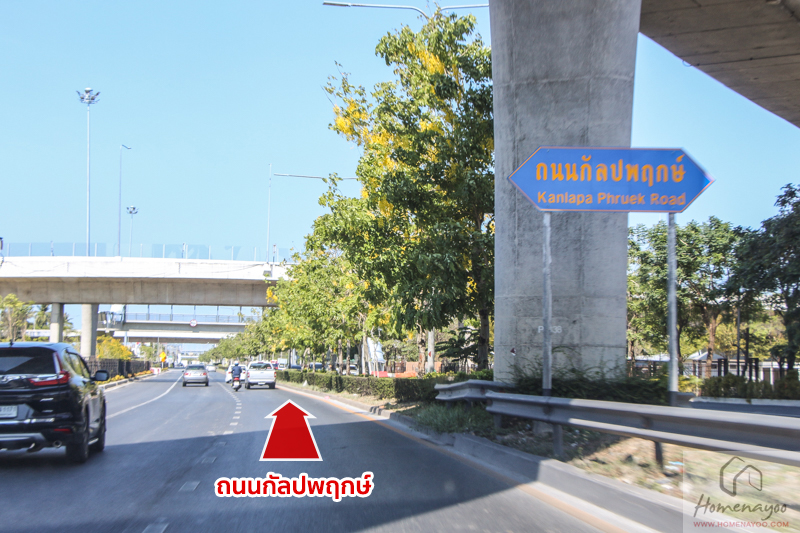 ผ่าน BTS วุฒากาศ จากนั้นให้เบี่ยงซ้ายก่อนถึงทางแยกต่างระดับสวนเลียบค่ะ