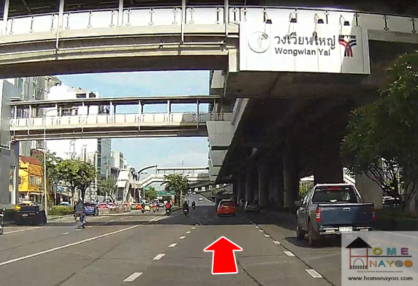 เข้าสู่ถนนกรุงธนบุรี ผ่าน BTS กรุงธนบุรี ให้ขับตรงไปเรื่อยๆ