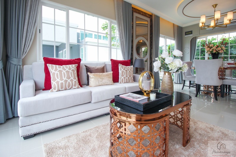 วัสดุ : ฟังก์ชันภายในบ้านออกแบบมาได้อย่างลงตัวขนาด 4 ห้องนอน 3 ห้องน้ำ ที่จอดรถ 2 คัน มีห้องพักผ่อนชั้นบน พร้อม Glass House Laundry ในบางแบบบ้าน ตัวบ้านออกแบบมาสวยงามตามสไตล์อังกฤษแบบ Luxury