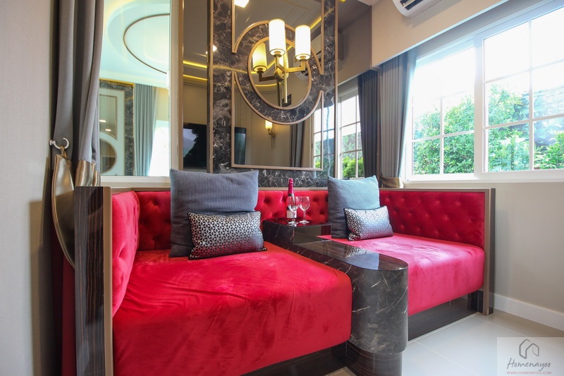 เมื่อเข้ามาภายในห้องมีขนาดกว้างขวางโอ่โถง หรูหรา ฝั่งซ้ายเป็นโซนพักผ่อน