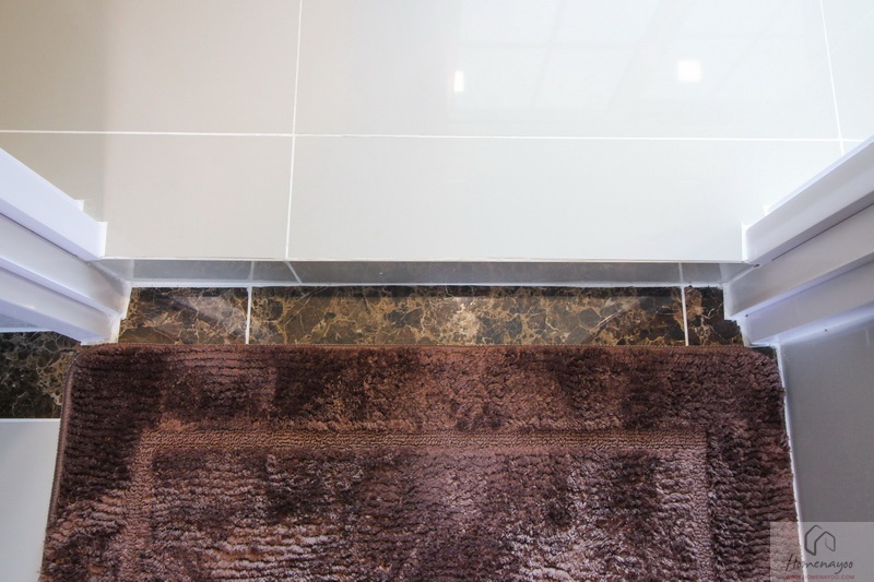 โดยมีการบิวท์อินเป็นชั้นวางของใช้ และเคาน์เตอร์หินอ่อนสีเทาเข้ม