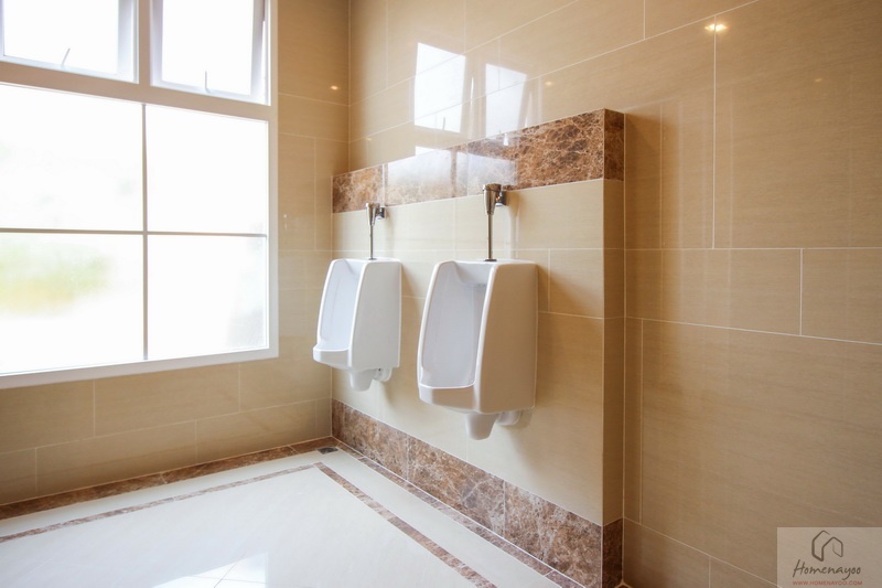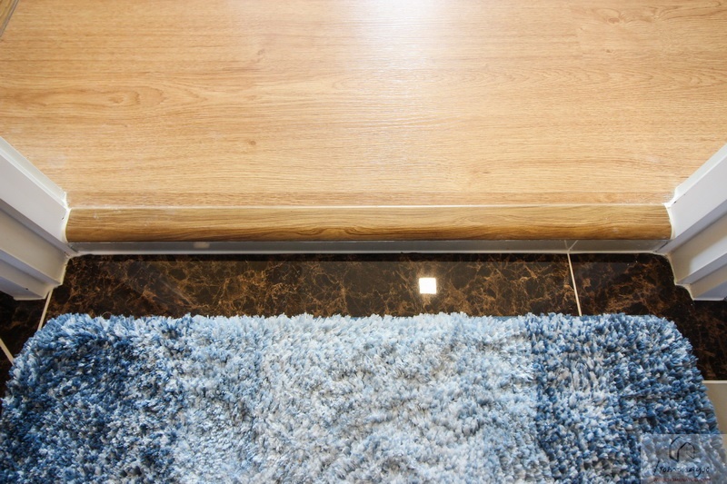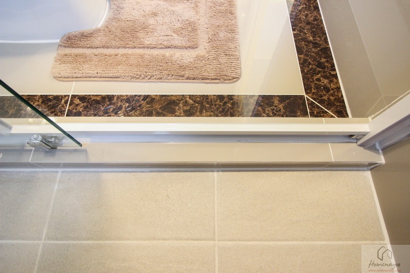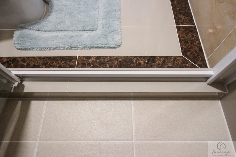 บริเวณทางเข้าห้องน้ำธรณีประตูมีการลดระดับพื้นลงเล็กน้อย ป้องกันน้ำไม่ให้ไหลออกไปเปื้อนที่พื้นด้านนอก