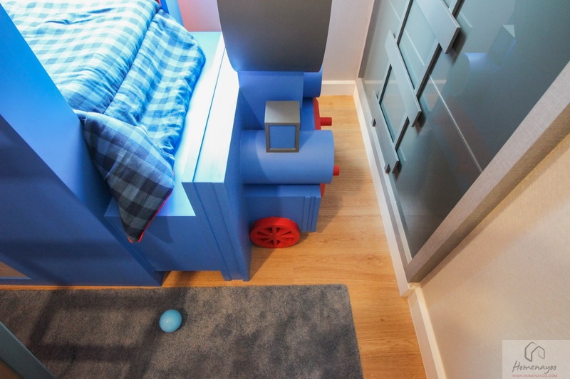 พื้นปลายเตียงหลังจากที่บิวท์อินเป็นโต๊ะทำงานขนาดพอเหมาะแล้วก็ยังเหลือพื้นที่ให้เดินขึ้น-ลงเตียงได้อีกนิดหน่อย