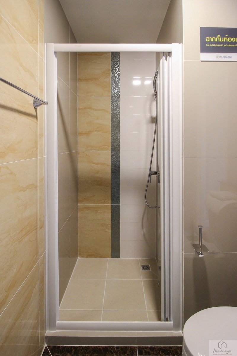 มาดูกันที่มุมอาบน้ำกันบ้าง บริเวณนี้มีฉากกั้นอาบน้ำเป็นสัดส่วน มีหน้าต่างระบายอากาศภายใน และด้านหน้ามีราวแขวนผ้าขนหนูติดตั้งให้ด้วย 1 จุด