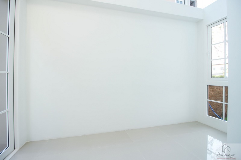 ส่วนของบ้านส่งมอบฝาผนังฉาบเรียบทาสีขาว