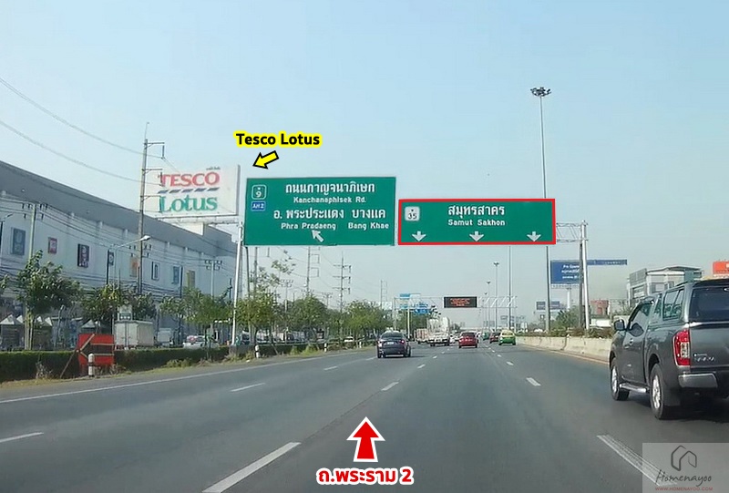 จากนั้นมุ่งหน้าตรงตามป้ายไปยังสมุทรสาครฝั่ง ถ.พระราม 2